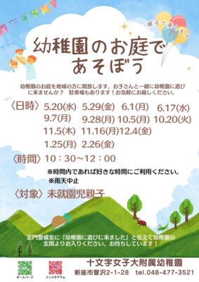 令和8年度の実施予定日が決まりましたので、ぜひ幼稚園の広いお庭へ遊びにきてみてください。