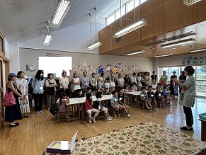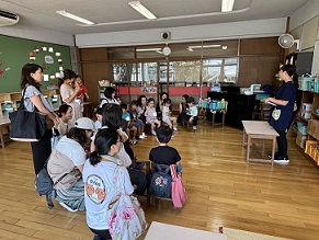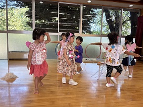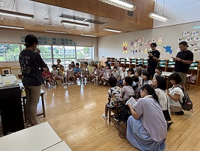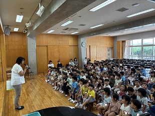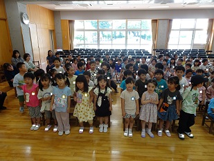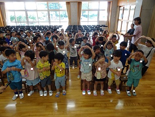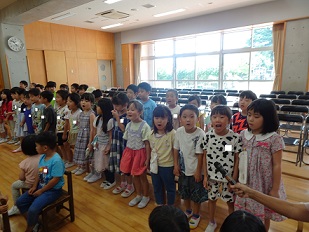 園長先生からは、「まだまだ暑い日が続くので、お外で遊ぶ時には帽子をかぶたり、休憩をとったり、水分補給をしっかりしましょう。」などお話がありました。