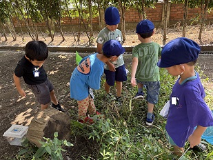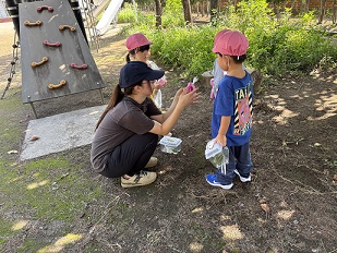こちらは、虫探しとおしろい花の色水作りのようです。