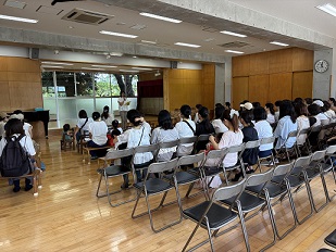 9/1(月)2学期が始まりました。9月になっても、収まることのない猛暑の中、始業式が行われました。ホールに集まった子ども達は、暑さに負けないくらい、元気いっぱいでした。