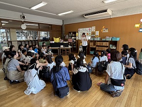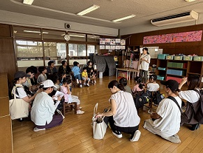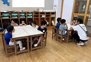 年長さんの部屋に行ってみると、クラスのみんながまーるく集まっています。何か、大事なお話があるのかな。
