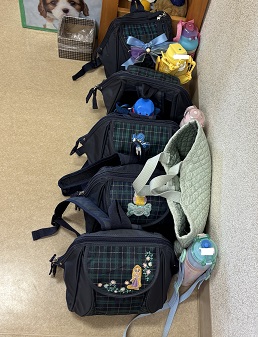 それぞれのクラスの登園時間になると、カバンをしょって「いってきまーす」と部屋へ向かって行く姿が、かわいいです。