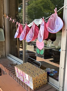 遊んだ後の帽子は、汗でびっしょり💧洗濯ばさみで干されていました。あっという間に乾きそうです。