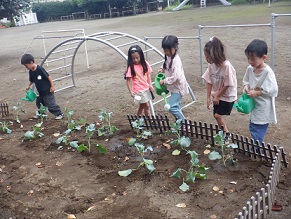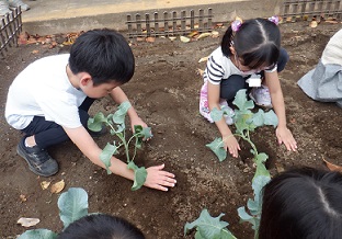 年長さんの畑の野菜たち、大きく大きくなあれ!