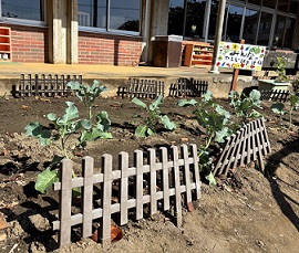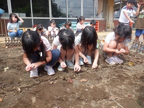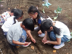 4種類の野菜をそれぞれのクラスで1グループずつ分かれて植えました。