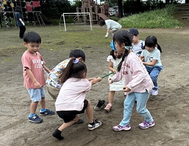 すると、年少さんも仲間に入ってきました。こんなにいっぱい入りました。