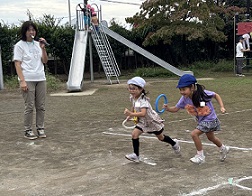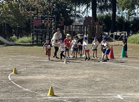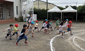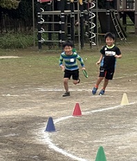 年長さんは、もちろん勝つことを目指して走っています。負けてしまうと悔しくて涙が出てしまうこともありますが、まだまだこれからです。次、頑張ろうと励ましています。