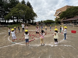 玉入れの前に音楽に合わせて、踊りをおどって♪