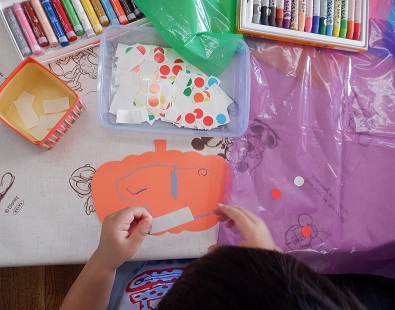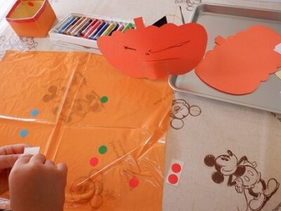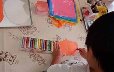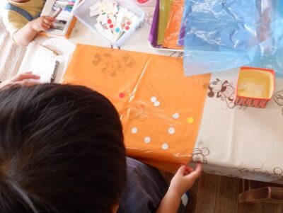 第8回のいちごぐみでは、新聞ちぎりとハロウィン製作をしました。