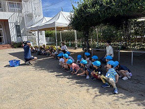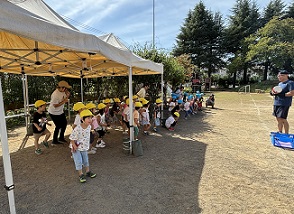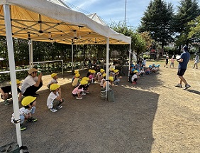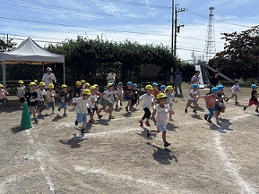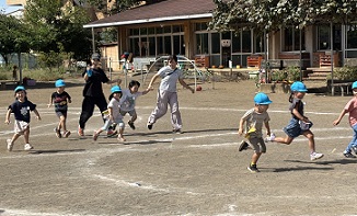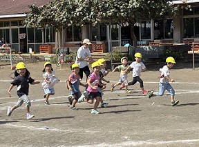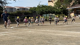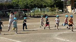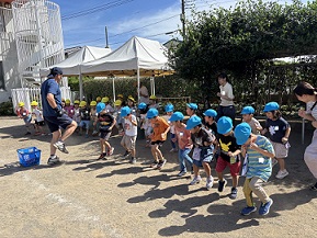 年長さんの後に、年中さんも『忍者塾』をしました。速く走るコツを教えてもらいました。