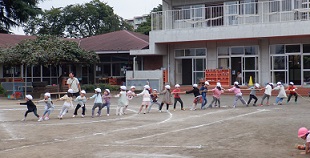年長組はやる気満々で、綱引きの練習です。