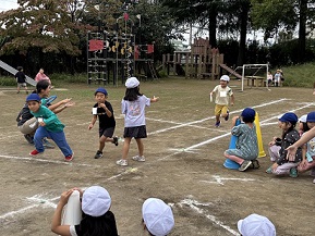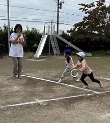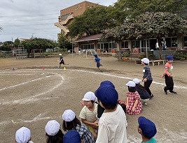 バトンパスも上手になってきました。落とさないようにしっかり渡そうね。