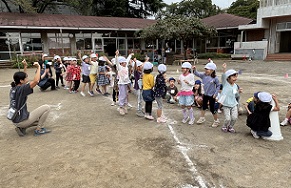 運動会の日が、だんだん近づいてきました。幼稚園でも、いろいろな競技の練習を楽しみながらやっています。