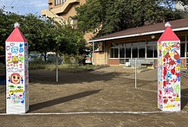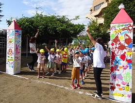 入場門も年長さんが絵を描いてくれました。みんなを応援してくれているようです。