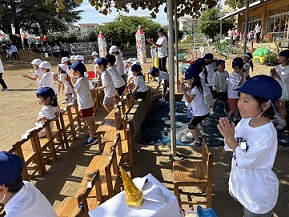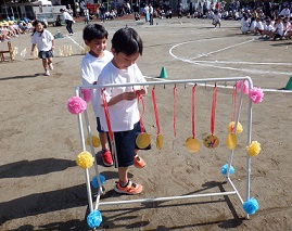 運動会が終わっても、まだまだ遊びの中では運動会が続いています。大きい子も小さい子も混ざって、いろいろな競技を楽しんでいます。そんな遊びの中からいろいろなことが受け継がれていくのでしょう。今年の運動会も、とてもステキないい運動会でしたね。また、来年に続いていくことでしょう。
