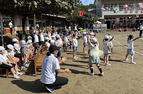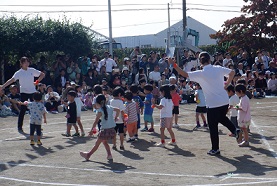 年長さんも一緒に踊っていました。見てる子ども達が自然に一緒に参加している姿がとてもステキだと思いませんか。