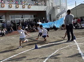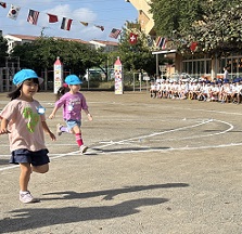 未就園児の競走です。いちご組や新しく始まったみかん組の子ども達も参加してくれました。