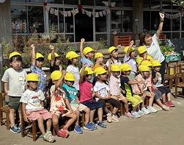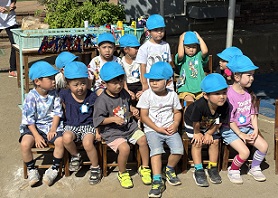 園長先生のお話を聞いて、うたを歌って体操をしました。