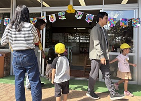 さて、お休み明けの幼稚園では……たくさんの子ども達が並んで
