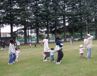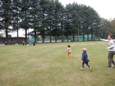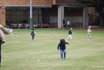 解散の後は、広いグラウンドでお土産のシャボン玉をして楽しむ親子が多かったです。