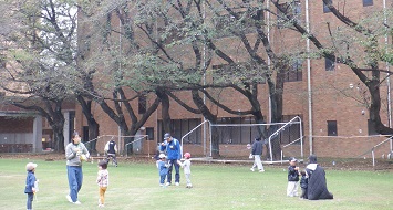 第9回のいちごぐみでは、大学のグラウンドや雑木林でお散歩をしました。