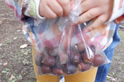 どんぐりや栗を拾ったり