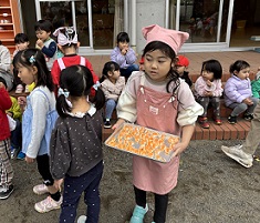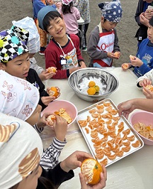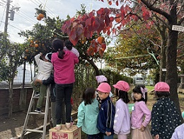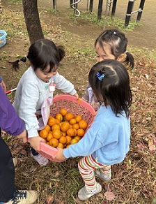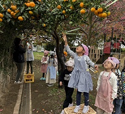 11 /11(火)幼稚園のみかんの木に今年もたくさんの実がなりました。美味しそうに色付き始めると、そろそろ食べられるかなと子ども達と眺めていました。毎年、年長さんがみかん屋さんを開いてくれています。