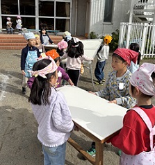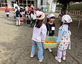 最後は、みかん屋さんで使った机も片づけてくれました。幼稚園のみかんは、甘くて美味しかったですね。年長組さんありがとうございました。