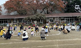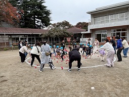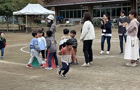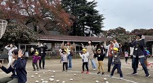 ゆっくりお弁当を食べた後は、お家の方と幼稚園での遊びを一緒にします。いくつかの遊びを紹介します。