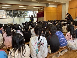 その後、ホールに集まって、3学期の始業式をしました。弾けんばかりの声であいさつしてくれました。