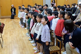 素敵な演奏を聞かせて下さった演奏者の皆さんに、子ども達から歌のプレゼントをしました。