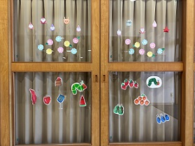 ホールの中にもかわいいあおむしさんや、サンタさんがお迎えしてくれました。