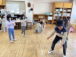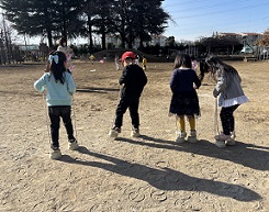 保育室でも園庭でも、この時期ならではの遊びを楽しんでいる子ども達です。