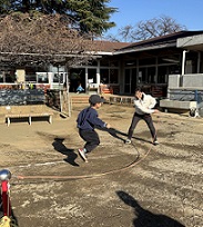 3学期が始まり、毎年恒例になっている年長さんの『ひもごまチャレンジ』が始まりました。チャレンジカードをもらって、マイごまゲットにむかって、チャレンジを進めていきます。