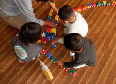 保護者の方と懇談会をしている間、子どもたちは先生たちとみかんぐみのお部屋で遊びました。
