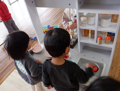 車やぬいぐるみ、可愛いキッチンなどで楽しく遊びました。
