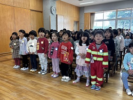 始めに園長先生から1年間を振り返ってのお話がありました。泣いたり笑ったり時にはけんかしたり、でもいっぱい遊んでお友達と仲良くなったね。4月には、小さいお友達が入ってくるので、優しく教えてあげてね。