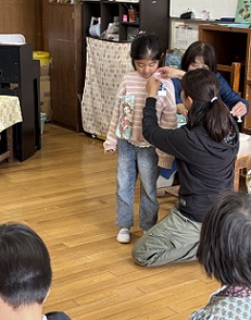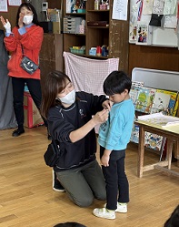 クラスに戻って、先生からひとりひとりに新しい名札を付けてもらいました。